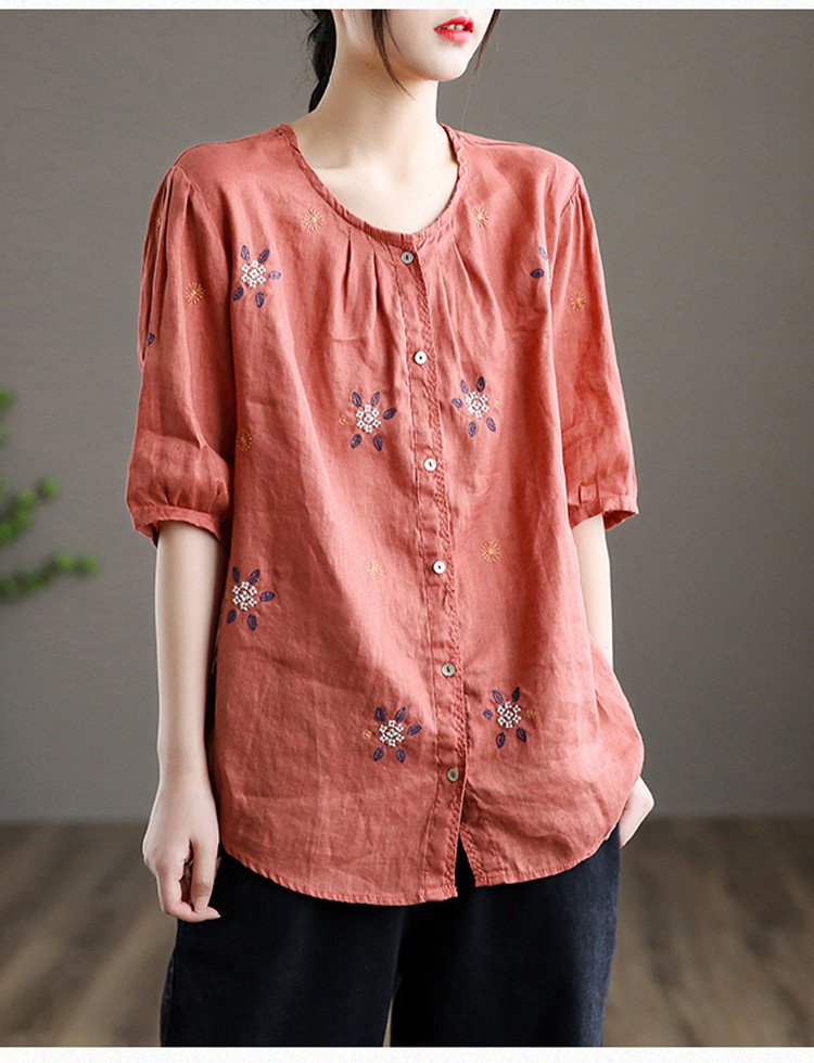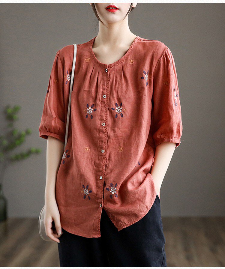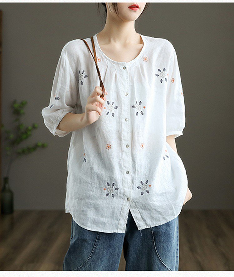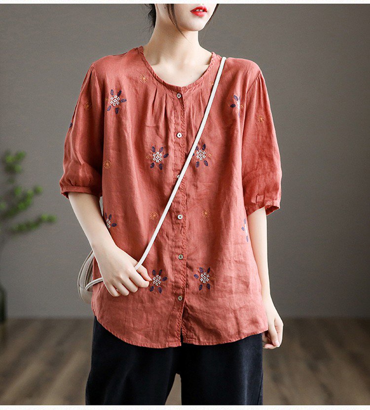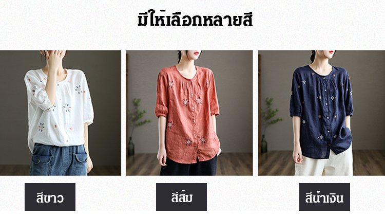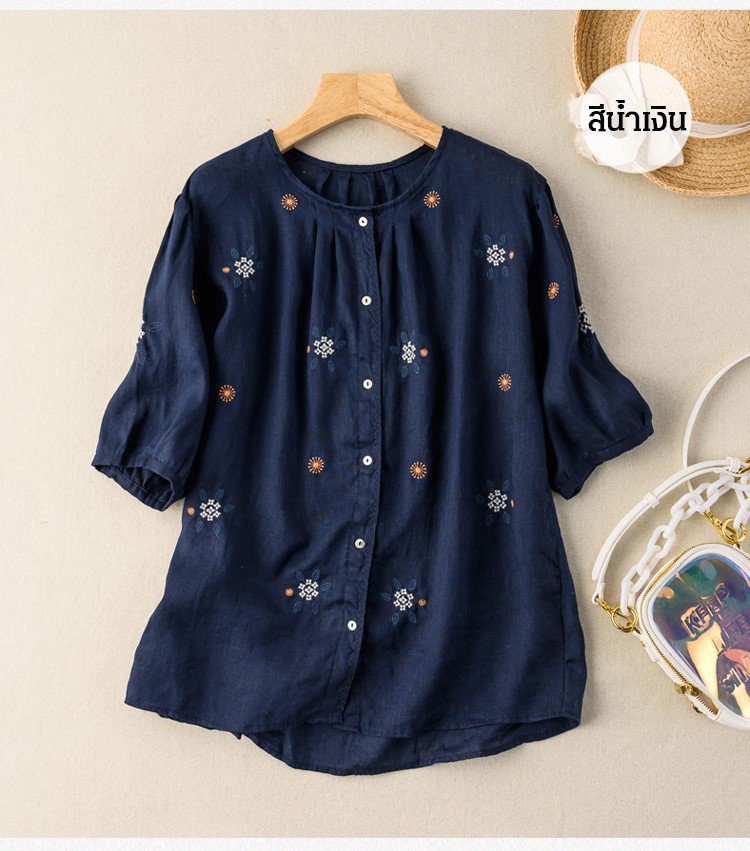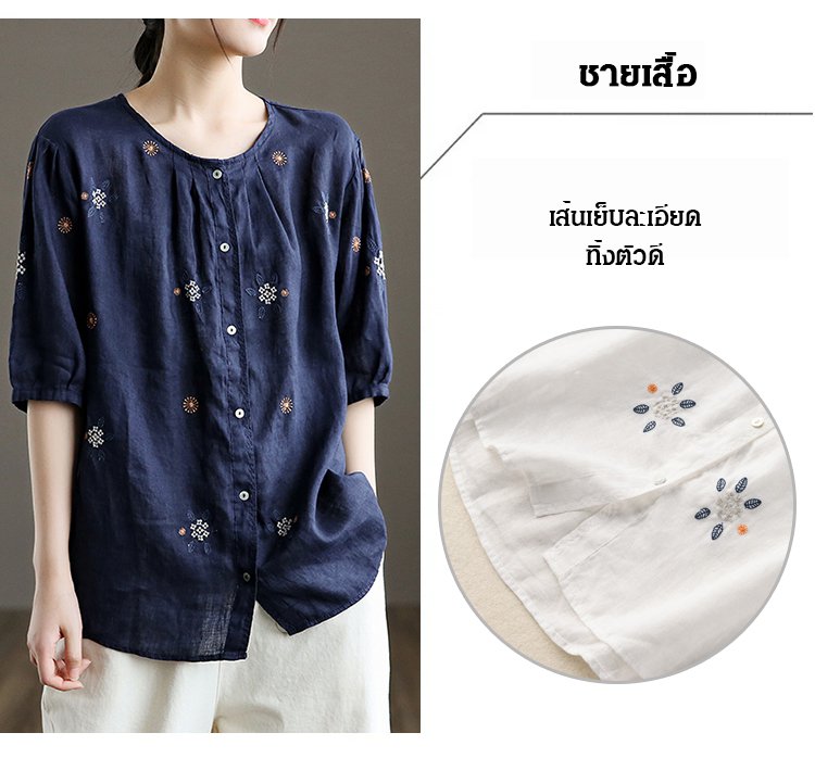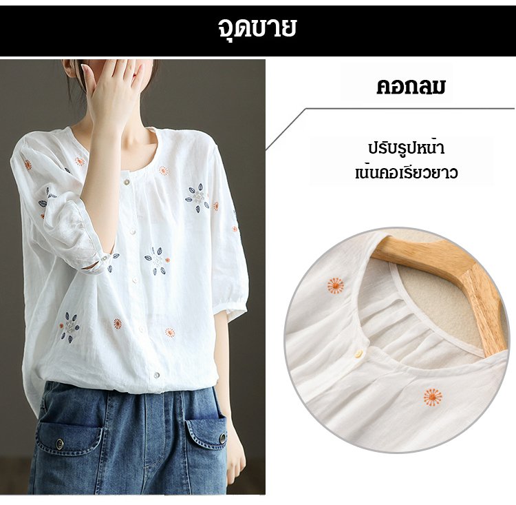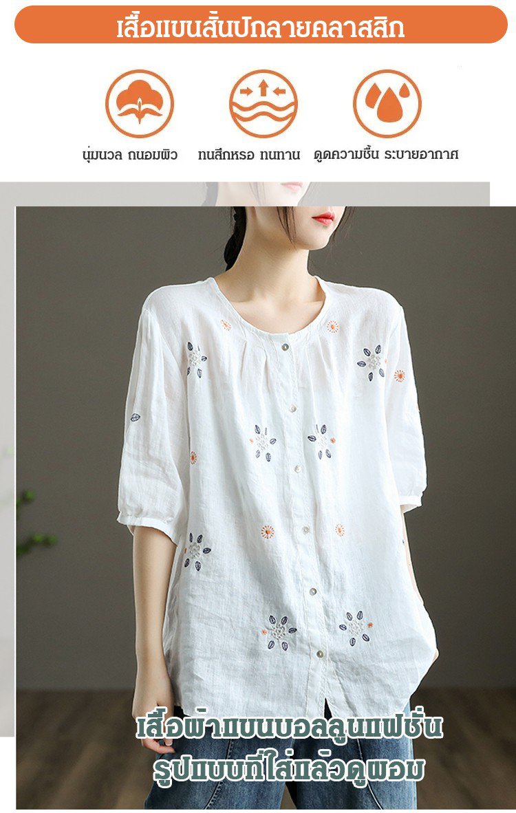เสื้อแขนสั้นแขนบอลลูน ปักลายวินเทจ