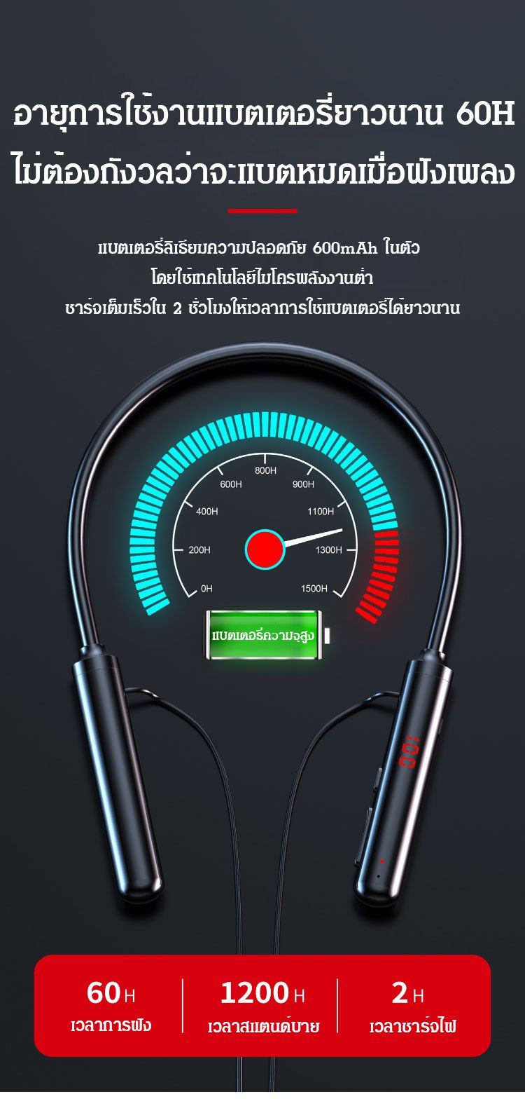 บลูทูธ 5.0 แบบคล้องคอพอดีหู หูฟังใส่วิ่งได